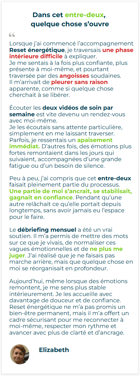 Thérapies, soins énergétiques, lectures, stages de développement personnel… Vous avez multiplié les démarches, investi du temps, de l’argent et de l’énergie, mais les résultats ne tiennent jamais dans la durée. Vous sentez que quelque chose de plus profond vous échappe encore.