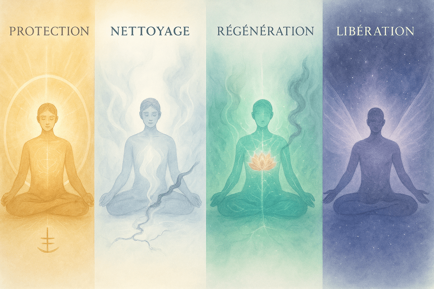 Purification des corps subtils (physique, émotionnel, mental) pour libérer tensions et mémoires limitantes